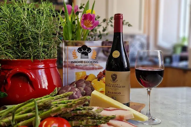 La experiencia comienza con Prosecco y aperitivos al estilo romano; durante la cena se sirve vino.
