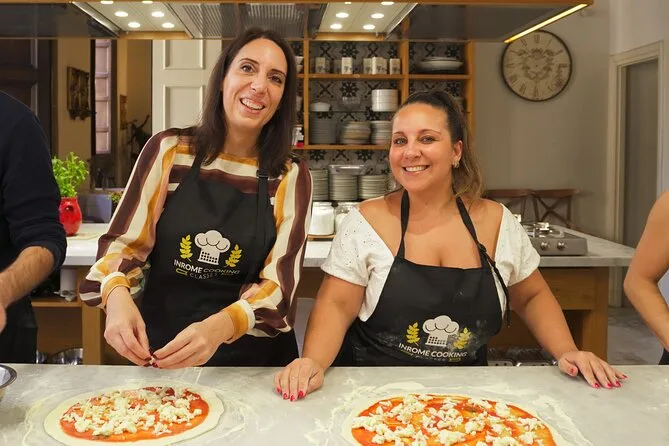 Tu velada incluye una copa de Prosecco de bienvenida con aperitivos romanos en la cocina de un palacio histórico; guía paso a paso de un chef local que habla inglés; todos los ingredientes para hacer pizza fresca (con toppings a tu elección) y gelato cremoso casero; cena de dos platos con vino italiano; y recetas digitales para llevar a casa.