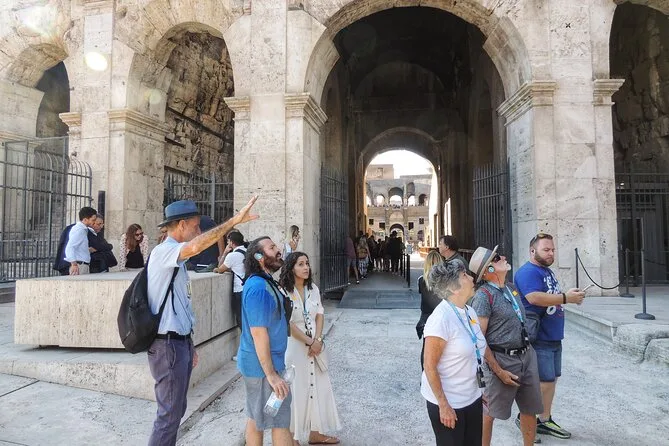 Tu día incluye entradas sin colas al Coliseo, todas las tarifas de reserva e impuestos, uso de auriculares para una guía clara en grupos grandes y un guía en inglés que te llevará por los puntos más importantes de la antigua Roma. Solo llega 10 minutos antes al punto de encuentro con tu ID—todo lo demás está listo para ti.