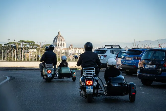 Recorre el tráfico caótico de Roma en vespa con sidecar y un conductor local—cambiando de asiento en cada parada—conoce de cerca iconos antiguos como el Coliseo, respira el aroma de los naranjos en el Aventino, disfruta un café o gelato en Trastevere y termina con las luces de la ciudad desde el Janículo. Risas, historias reales y esos momentos inesperados.