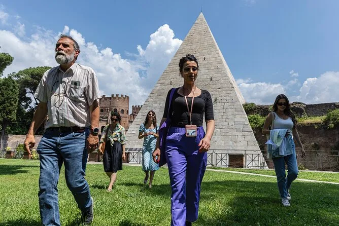 Visitarás la Pirámide de Cayo Cestio y conocerás el Monte Testaccio.
