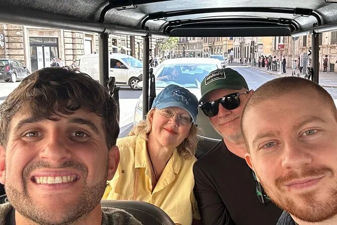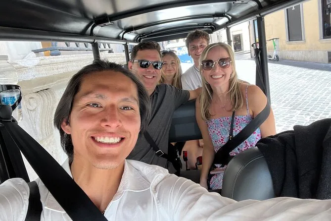 Tu día incluye recogida en el centro de Roma antes de salir con tu guía local (que también conduce). Viajarás en un carrito eléctrico de lujo con muchas paradas: vistas al Coliseo, visitas al Panteón, lanzamiento de monedas en la Fontana di Trevi y tiempo para estirar las piernas con paseos cortos por callejones históricos antes de regresar relajado y lleno de nuevas historias.