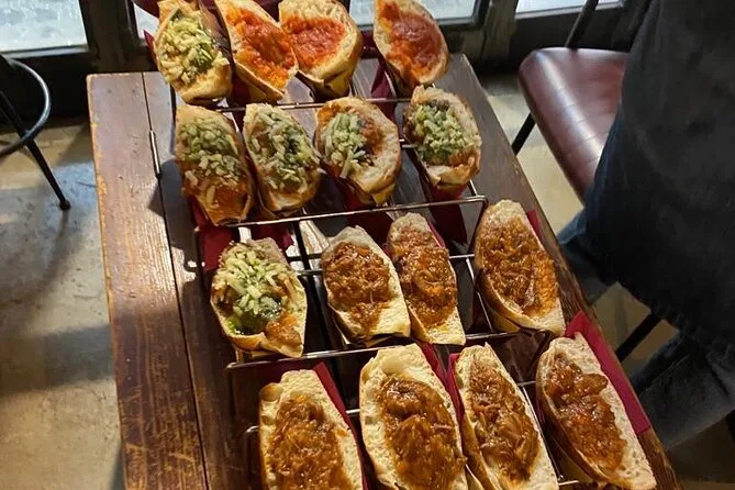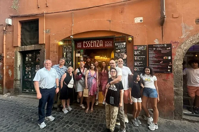 Tu velada incluye paseos guiados por las animadas calles de Trastevere con un experto local que te lleva a cuatro lugares emblemáticos para más de veinte degustaciones: pasta casera, pizza al horno de leña del horno más antiguo de Roma, embutidos y quesos premiados maridados con vino fino ilimitado (y cerveza artesanal), terminando con gelato artesanal antes de regresar satisfecho y feliz.