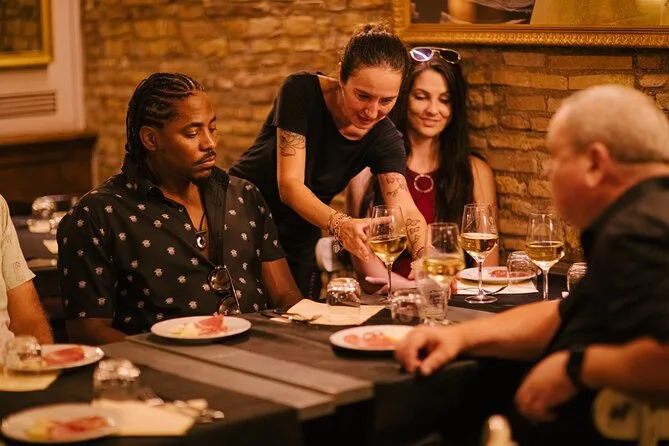 Tu noche incluye Prosecco servido mientras recorres las calles de Roma, degustación de cerveza artesanal en bares locales acompañada de snacks típicos de aperitivo (como aceitunas o frituras), además de paradas guiadas frente a iconos como el Coliseo y el Circo Máximo. Te llevará un guía local experto que mantiene el ambiente animado—solo lleva chaqueta si hace frío.