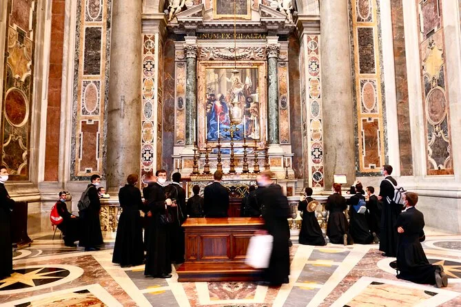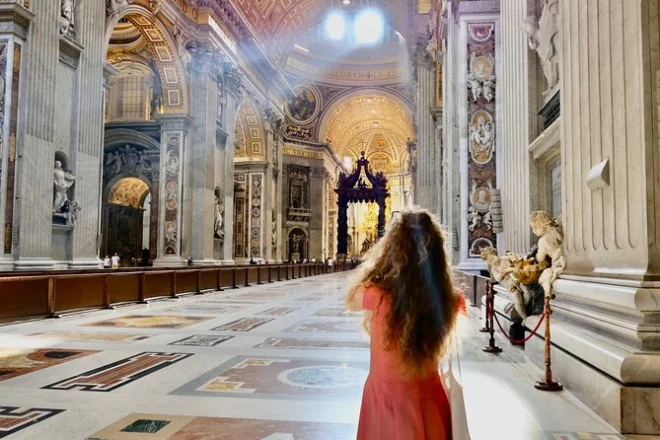 Tu experiencia incluye una visita guiada completa por la Basílica de San Pedro con una historiadora de arte como guía privada, entradas para subir a la cúpula, acceso a las grutas vaticanas, auriculares desinfectados para escuchar siempre a tu guía con claridad incluso en lugares concurridos, y asistencia completa durante toda la visita.