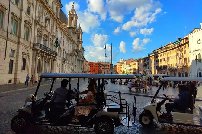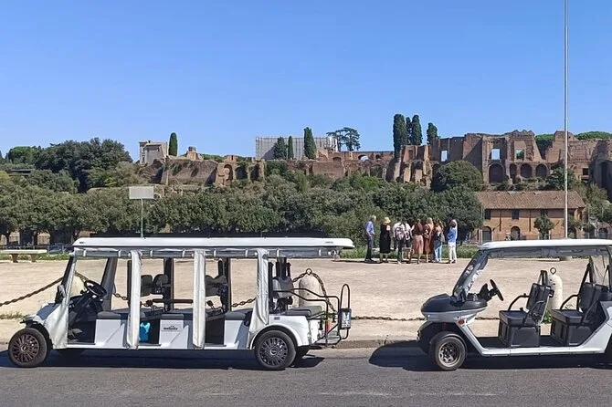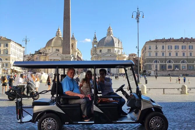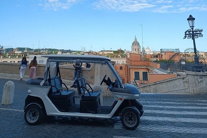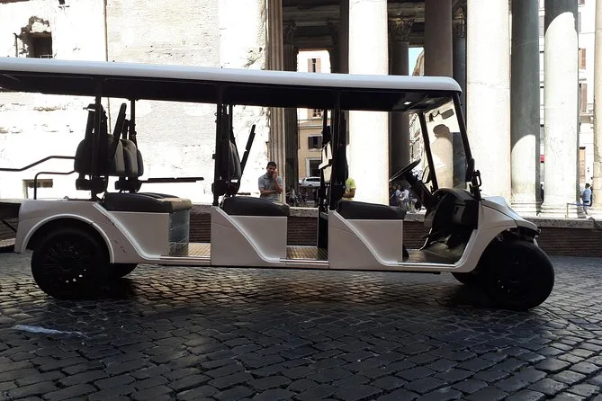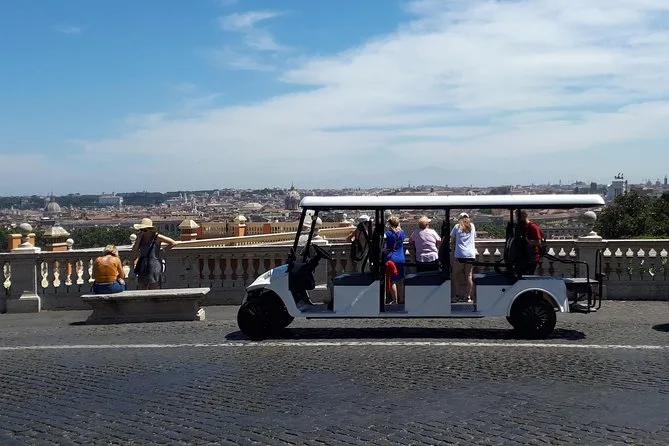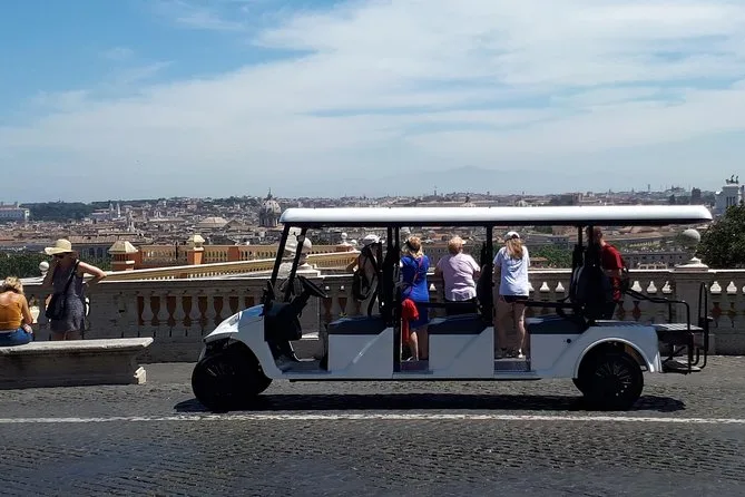 Tu día incluye transporte privado en carrito de golf ecológico con un guía profesional que te recoge en tu hotel o punto elegido en el centro de Roma; rutas totalmente personalizables; paradas para fotos o cafés cuando quieras; y regreso a cualquier lugar del centro al terminar.