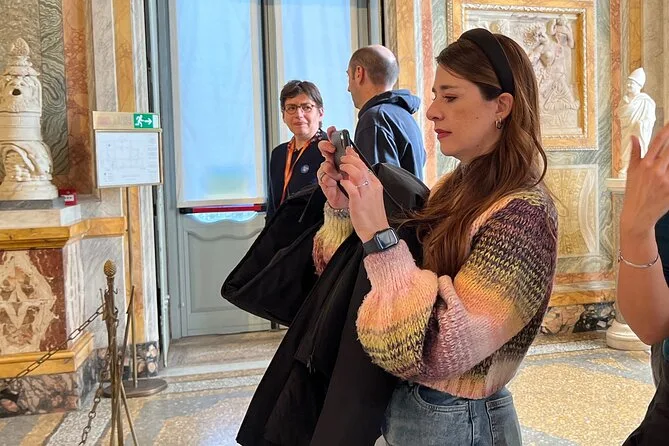 Confieso que no esperaba sentir nervios antes de entrar a la Galería Borghese — al fin y al cabo, es solo un museo, ¿no? Pero en cuanto nuestro guía Paolo nos entregó los auriculares y nos llevó directo saltándonos la fila (sí, me sentí un poco orgulloso), entendí que esto no era cualquier galería. El suelo de mármol estaba fresco bajo mis sandalias y había un aroma sutil a barniz antiguo mezclado con algo floral — ¿quizás venía de los jardines afuera?
