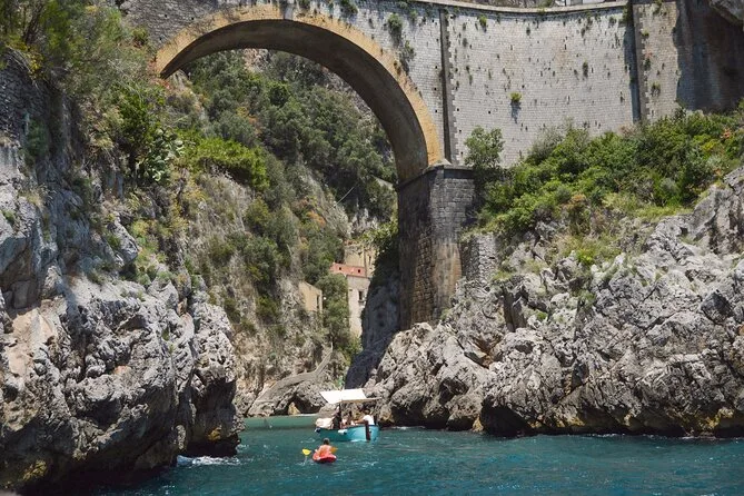 Pasarás por el pueblo pesquero Marina Grande, ruinas romanas en Bagni della Regina Giovanna, la reserva marina de Punta Campanella, el archipiélago de Li Galli (Sirenuse), Nerano, Praiano y la bahía Fiordo di Furore.