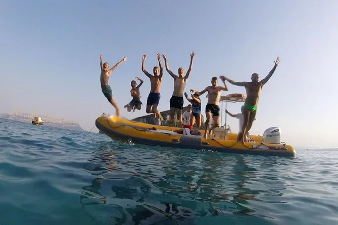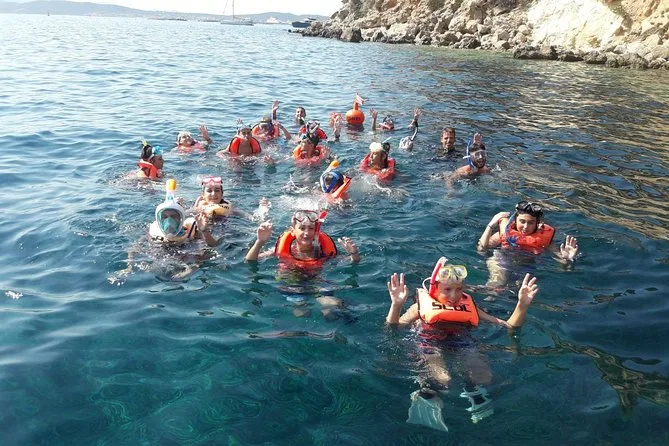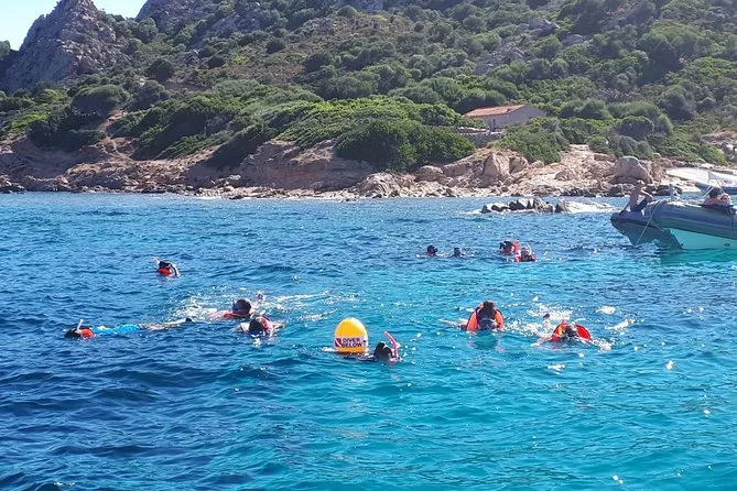 Tu día incluye todo el equipo de snorkel (máscara, aletas, neopreno, chaleco de flotación), la guía experta local en cada parada dentro del área marina protegida de Tavolara, además de agua mineral, té frío y snacks a bordo entre los baños, regresando al puerto tras unas cuatro horas.