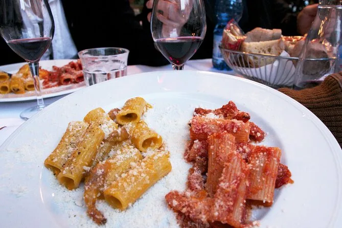 Tu velada incluye cuatro paradas seleccionadas en Trastevere: tablas de embutidos y quesos caseros acompañados de vino, comida callejera romana como el baccalà (con más vino), una cena completa con antipasto, pasta y plato de carne con vinos locales y limoncello para cerrar—y finalmente gelato orgánico antes de regresar bajo las luces del barrio.