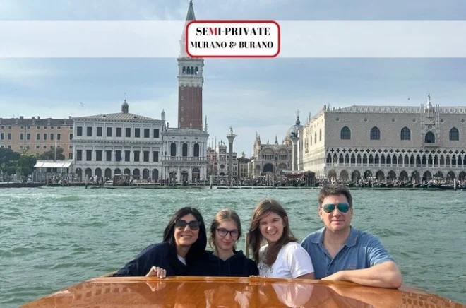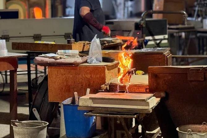Tu día incluye transporte en barco semi-privado ida y vuelta desde cerca de la Plaza de San Marcos en Venecia, comentarios en inglés de una guía local que comparte historias personales, entrada a una fábrica de vidrio en Murano con demostración artesanal y visita a la sala de exposición, además de tiempo libre en Burano para explorar tiendas de encaje o probar galletas bussolà antes del regreso por la laguna.