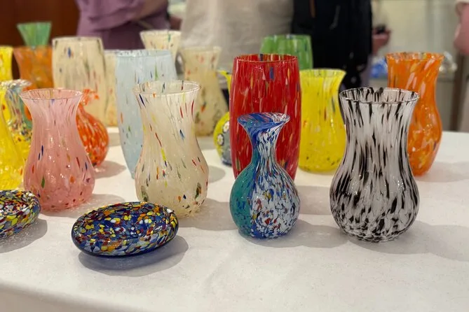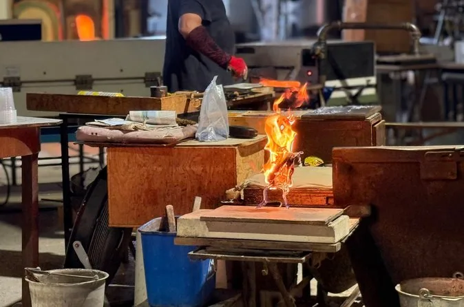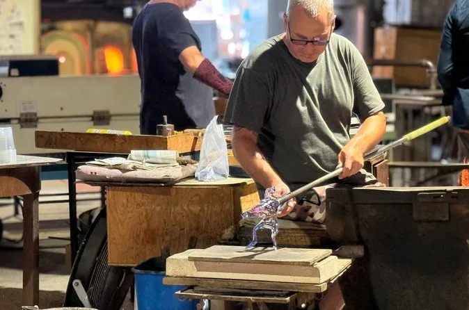 Sí, visitarás una fábrica local para ver una demostración en vivo de un maestro soplador de vidrio.