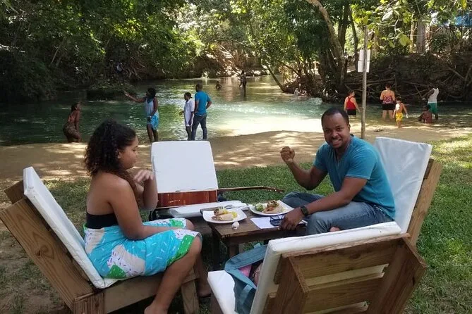 Tu día incluye recogida en tu hotel o puerto de cruceros en Ocho Ríos, todas las entradas para Blue Hole y Dunn’s River Falls con guías certificados en cada lugar, una silla junto al río en Reggae Hill donde disfrutarás de entretenimiento ligero y un almuerzo jamaicano de cuatro tiempos tipo tapas con cócteles de la casa o limonada antes de regresar juntos por la tarde.