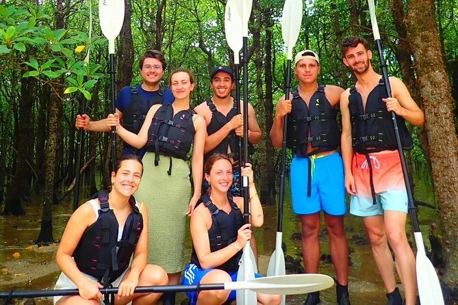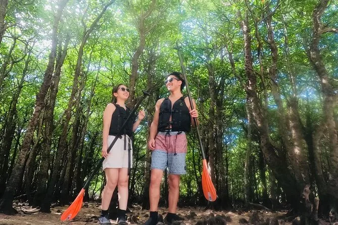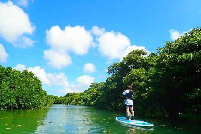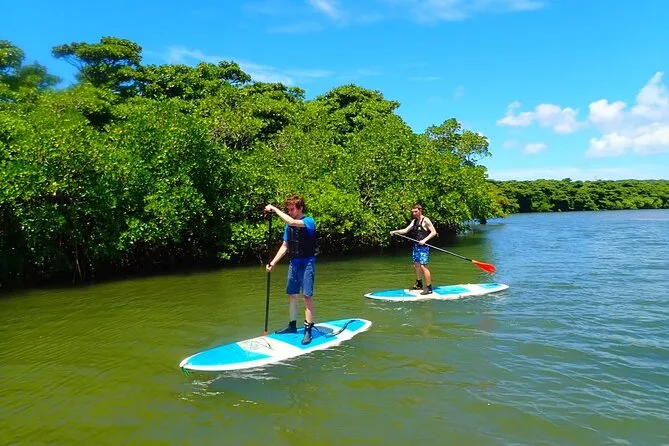 Tu experiencia incluye todo el equipo para SUP o canoa en el manglar del río Miyara con un guía local que te acompaña en cada curva. Recibirás fotos digitales de tu aventura y acceso a duchas calientes cerca del puerto de Ishigaki al terminar, además de cupones especiales para restaurantes locales.