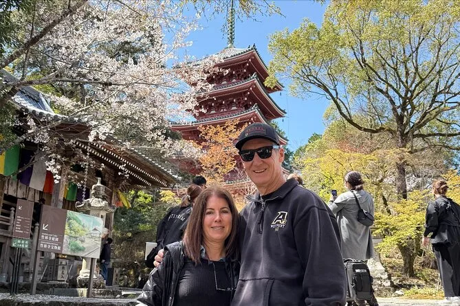 Después paseamos por el Jardín Botánico Makino—tantos tonos de verde que perdí la cuenta—y luego entramos en el Templo Chikurinji, justo al lado. Había incienso flotando en el aire y en algún lugar sonaba una campana. Intenté imitar cómo se inclinan los locales al entrar, aunque seguro que me salió torpe (Yuki sólo sonrió). Nos contó sobre una estatua de Buda “secreta” que había estado oculta durante décadas; me gustó que algunas cosas aquí se mantengan misteriosas. Los caminos del jardín estaban cubiertos de musgo y mis pasos apenas hacían ruido.