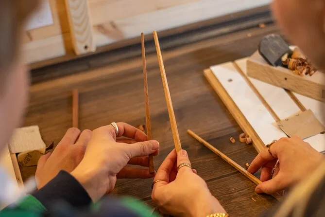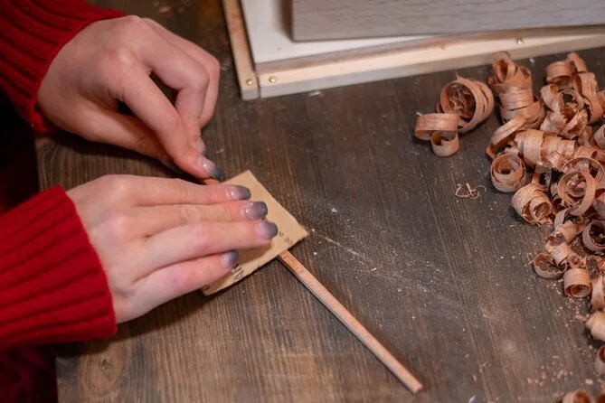 La elección de la madera fue más interesante de lo que esperaba — había unas más claras con un aroma dulce y otras más oscuras que se sentían más pesadas en la mano. Elegí una que me recordó a las castañas. Mis manos se llenaron un poco de polvo mientras daba forma a las puntas; realmente sientes cada veta bajo el pulgar. Lijarlas fue extrañamente satisfactorio, como alisar un día complicado. Hubo un momento en que la luz del sol iluminó la mesa de trabajo y todo se volvió dorado por un instante — quizá suene cursi, pero se me quedó grabado.