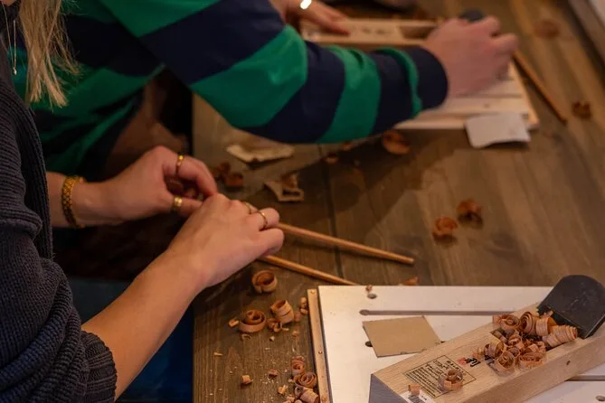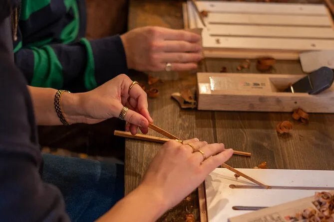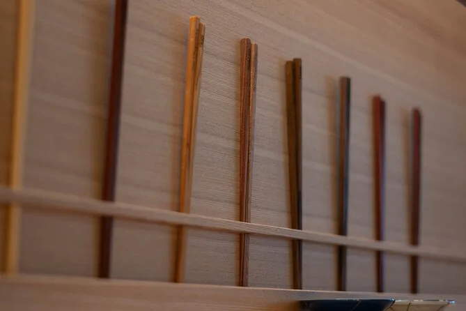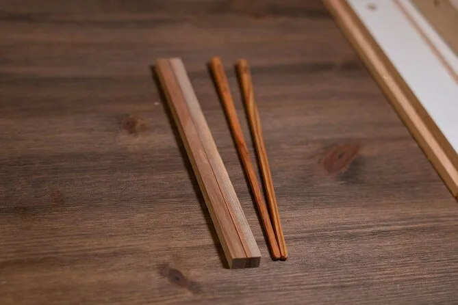 Tu experiencia incluye todos los materiales y herramientas para hacer tu par de palillos en Gion, la guía de personal amable que habla inglés durante todo el proceso, la opción de elegir entre nueve tipos de madera japonesa (dos incluidos sin coste extra) y la posibilidad de grabar tu nombre para un detalle aún más personal.