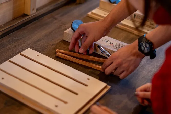 Crearás tu propio par de palillos de madera en el barrio Gion de Kyoto usando herramientas tradicionales japonesas, guiado paso a paso por un equipo local amable. Elige entre varios tipos de madera, lija y termina tus palillos, y añade un grabado con tu nombre si quieres un toque personal. Es una experiencia práctica, relajante y muy memorable — un recuerdo auténtico para llevar a casa.