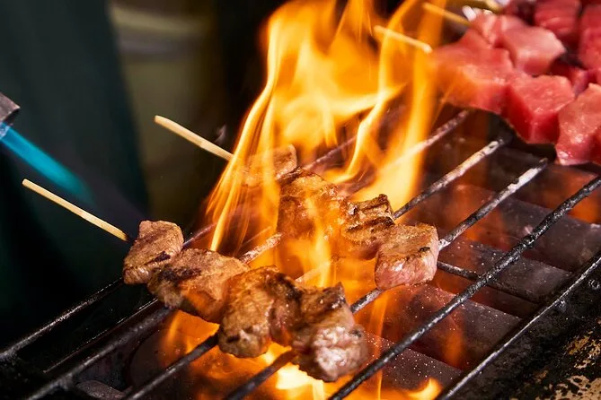Sí, probarás varios platos callejeros como atún fresco, brochetas de wagyu, wasabi y más durante el recorrido.