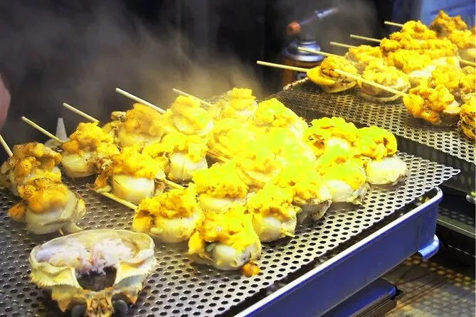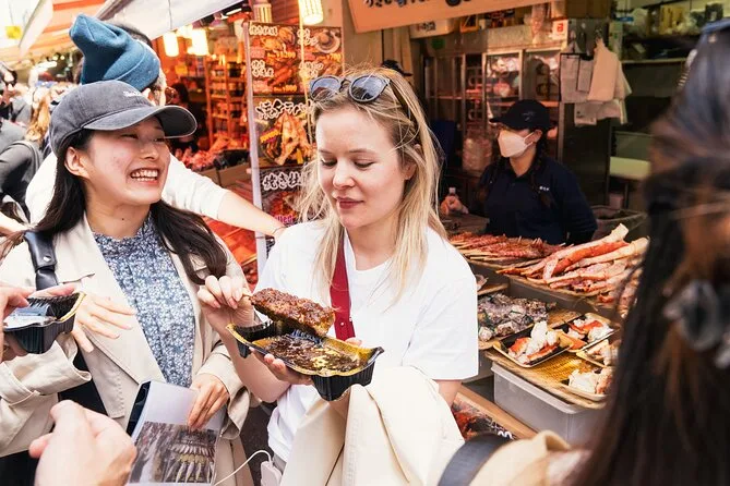 Recorre el Mercado Tsukiji en Tokio con un guía local, prueba comida callejera fresca como brochetas de wagyu y tazones de sashimi. Mira a un chef cortar un atún entero con técnicas tradicionales y visita un templo cercano para una reflexión tranquila sobre la cultura japonesa. Risas, sabores nuevos y momentos que te acompañarán mucho después.