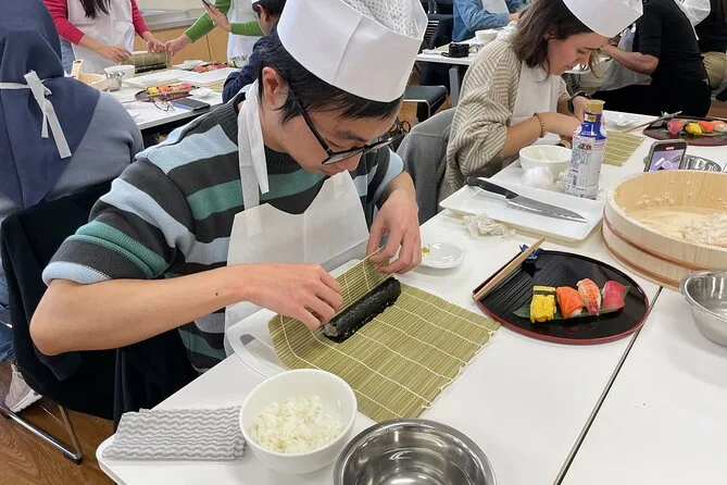 Harás cuatro tipos de nigiri (como atún, salmón, tamago) y un sushi enrollado (hosomaki).