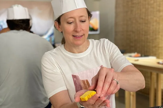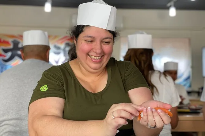 No esperaba ver cómo desarmaban un pescado entero con tanta destreza justo frente a nosotros. El chef movía el cuchillo con una rapidez impresionante — explicó cada paso en inglés, pero yo solo podía fijarme en sus manos. Hubo un momento al cortar el salmón que casi se podía escuchar lo suave que era. Usamos utensilios reales de tiendas locales, nada de plástico casero. Eso le daba un aire más auténtico a todo.