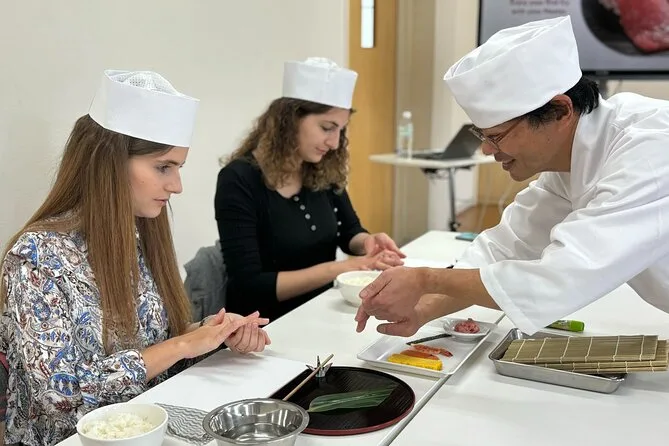 Tu día incluye todos los ingredientes frescos directamente del mercado Tsukiji, uso de utensilios y vajilla auténtica de tiendas locales, guía en inglés con un maestro sushi profesional, y una comida con tus nigiris y rollos hechos a mano junto con piezas extra del chef, además de sopa dashi tradicional y té verde japonés antes de volver al ritmo de Tokio.