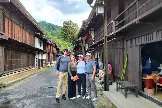 Tu día incluye encuentro con el guía de habla inglesa en la estación de Nakatsugawa, transporte en bus a Magome-Juku, entradas a museos en el camino y un almuerzo tradicional japonés antes de finalizar en la estación de Nagiso por la tarde.