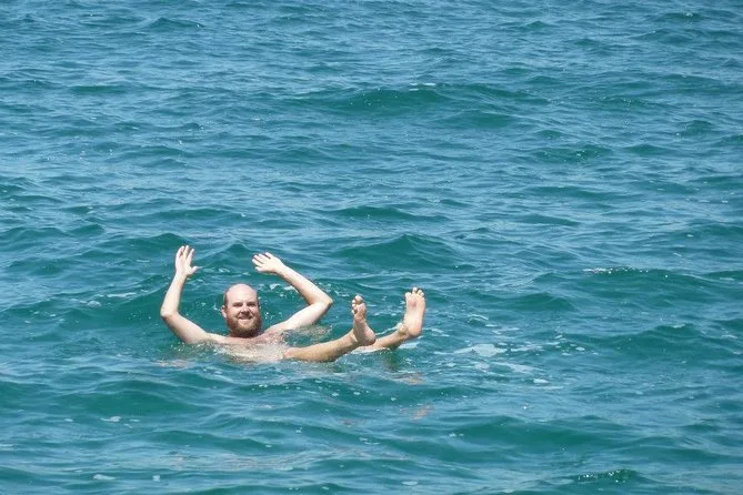 El Mar Muerto se siente irreal. Caminas hacia el agua y de repente flotas sin esfuerzo — es una paz extraña, como si tu cuerpo olvidara la gravedad por un rato. La sal pica si tienes alguna herida (aprendí rápido), pero se dice que el barro es bueno para la piel, así que nos lo aplicamos todos. El almuerzo fue un buffet libre en un hotel justo a la orilla; llené mi plato con hummus y algo picante que no supe identificar. Luego, sentados con el pelo mojado y la piel salada, viendo a las familias jugar en el agua… eso es lo que más se me quedó grabado.