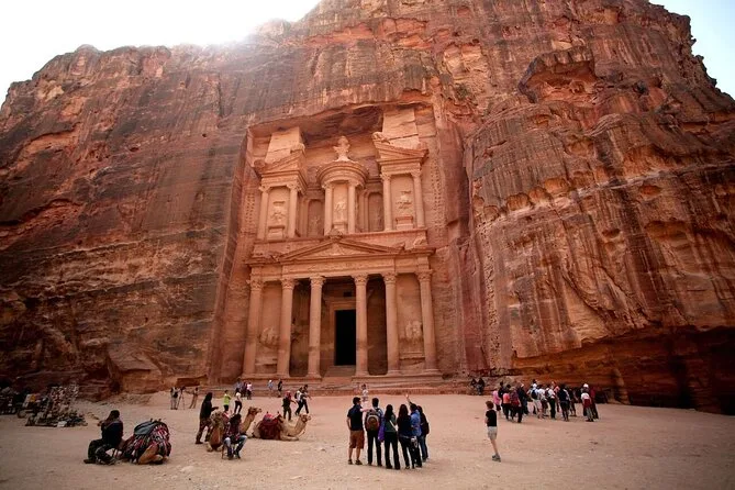 Sentirás la energía milenaria de Petra al cruzar el Siq y ver el Tesoro brillar al amanecer o al atardecer. Con guía local (si quieres), explora tumbas y templos escondidos lejos de las multitudes. Recogida privada en tu hotel de Amman para hacerlo todo fácil — solo lleva calzado cómodo y muchas ganas de descubrir.