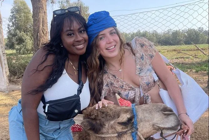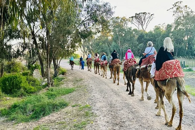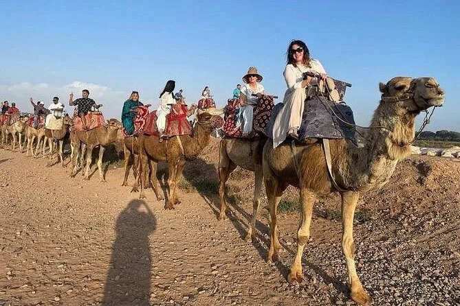 No esperaba sentirme tan alto, la verdad. Los primeros pasos sobre el camello en Agadir fueron un poco tambaleantes — mi guía Khalid sonrió y dijo: “Es tranquilo, solo tiene hambre.” Se percibía un leve aroma a heno mezclado con algo dulce de los eucaliptos cercanos. Pasamos junto a un grupo de niños que saludaban desde la carretera, y uno intentó imitar el paso del camello (no estuvo mal). Por un momento, entre los árboles, pude ver los muros del Palacio Real — no lo suficientemente cerca para detalles, pero sí para imaginar qué habrá detrás.