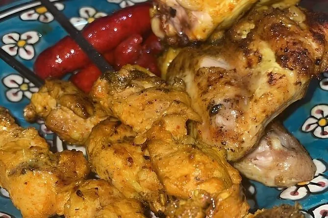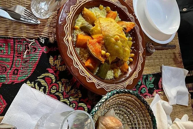 La cena incluye carnes a la parrilla, cuscús, frutas, aperitivos y té de menta marroquí.