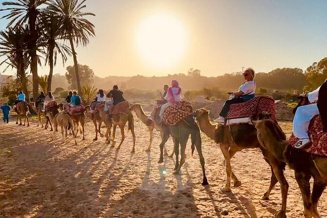 Montarás en camello por las dunas de Agadir al atardecer con un guía local, verás flamencos junto al río Souss y compartirás una cena de barbacoa con cuscús y té de menta al aire libre. Una tarde tranquila para disfrutar detalles como el aroma a eucalipto o las risas durante la cena, que se quedan contigo mucho después.