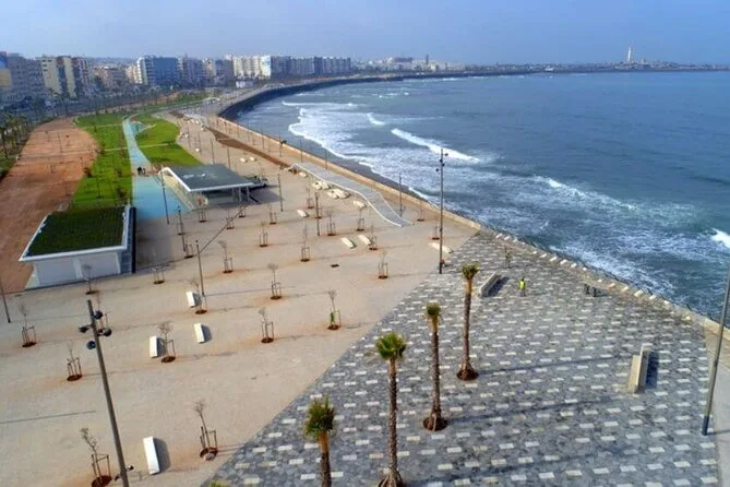 Tu día incluye recogida y regreso al hotel en Marrakech, transporte cómodo en minibús con aire acondicionado y seguro, un paseo guiado por los puntos más destacados de Casablanca como la Mezquita Hassan II y la Plaza de las Naciones Unidas, un almuerzo tradicional marroquí en un restaurante local, y tiempo para relajarte en una de las playas de Casablanca antes de regresar por la tarde.