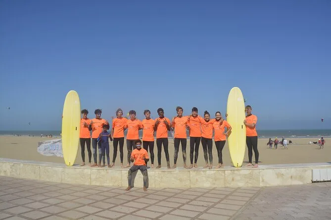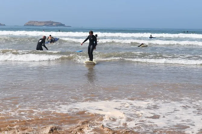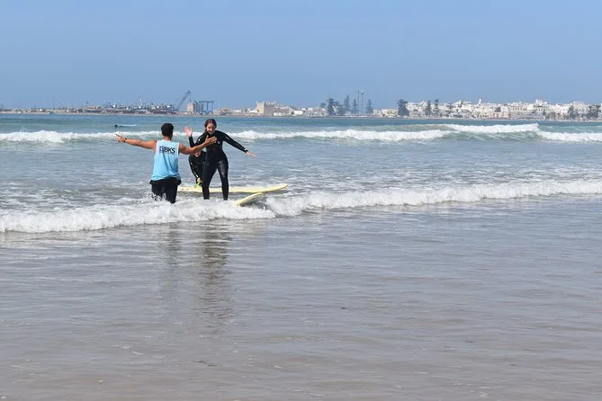 Únete a una clase de surf en grupo relajada en la playa de Essaouira con un instructor local que te guía paso a paso. Todo el equipo está incluido y las sesiones se adaptan a tu ritmo, así que seas principiante o tengas algo de experiencia, disfrutarás las olas y te llevarás recuerdos con arena en los pies.