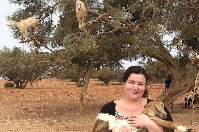 Tu día incluye recogida en hotel o riad en Marrakech, transporte con aire acondicionado y WiFi a bordo, té de menta servido por tu guía durante el viaje, paradas para ver cabras en árboles de argán y visitar una cooperativa femenina local que produce aceite de argán. También tendrás tiempo libre para explorar Essaouira antes de regresar por la tarde.