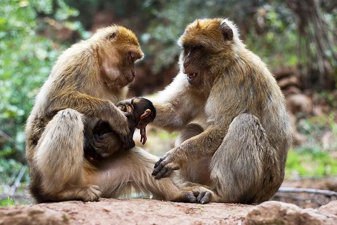 Sí, es común ver monos macacos de Berbería alrededor de las cascadas.