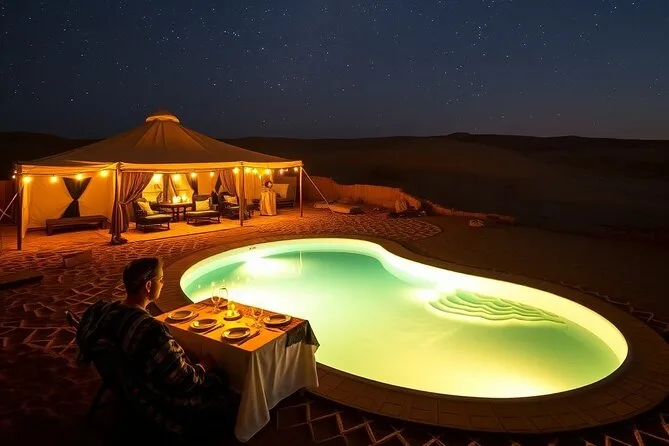 Deja Marrakech atrás para descubrir los espacios abiertos de Agafay, disfruta un té de menta con locales y monta en camello al atardecer. Luego comparte música y risas junto a la hoguera mientras cenas bajo las estrellas del desierto. Si buscas una experiencia mágica y tranquila, esta noche la recordarás mucho tiempo después de volver a casa.