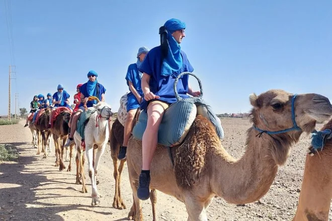 Tu día incluye transporte privado desde tu hotel en Marrakech (recogida y regreso), senderismo guiado entre pueblos con un local que conoce cada camino, pausas para café o té (incluyendo el dulce té de menta), paseo en camello con vistas al valle de Ourika, entrada a una cooperativa de aceite de argán dirigida por mujeres locales y un almuerzo tradicional marroquí servido en una terraza antes de regresar a la ciudad.