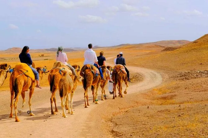Tu día incluye recogida en tu hotel de Marrakech o cerca de la mezquita de la Koutoubia, transporte de ida y vuelta al desierto de Agafay, paseo guiado en quad para dos personas, un tranquilo paseo en camello al atardecer, además de la cena con música en vivo y espectáculos—todo organizado por tu guía local para que solo te preocupes de disfrutar cada momento.