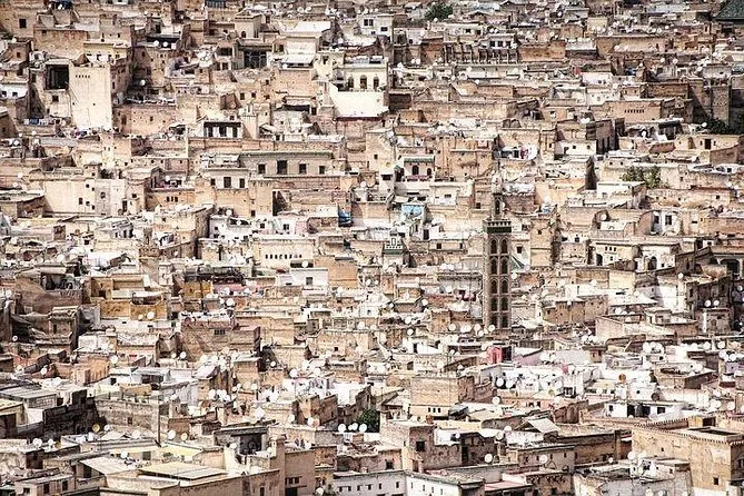 Fez es un laberinto—no es broma, más de 9,000 callejuelas serpentean por la medina. Tuvimos un guía local que parecía conocer cada atajo y puerta secreta. El olor a cuero de las curtidurías me llegó antes de verlas: grandes cubas de tintes, trabajadores moviéndose con precisión. Paseamos por palacios y antiguas madrasas, pasando por puestos que vendían lámparas de latón y cerámica pintada a mano. Compré una cartera hecha allí mismo—todavía huele a cuero recién trabajado. Almorzamos en un pequeño lugar cerca del barrio judío; la mejor harira que he probado.