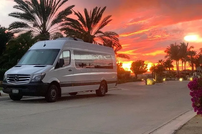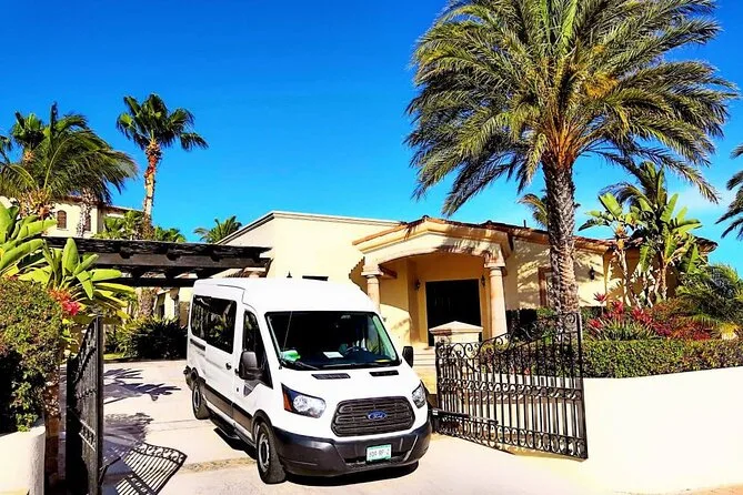 Saldrás del vuelo directo al bullicio de Cabo, para luego subir a una van con aire acondicionado y un chofer local que sabe exactamente a dónde ir. Con agua en mano, evitarás confusiones y llegarás directo a San José del Cabo — quizás hasta te lleves un consejo para tu primera comida en la ciudad. Es ese pequeño momento de calma que recordarás mucho después de aterrizar.
