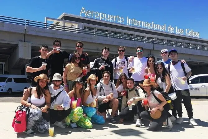 Después de recoger tu equipaje y pasar aduanas, sal del aeropuerto sin detenerte con los representantes de timeshare. Afuera, cerca de los Canopies 3-5 (Terminal 2) o saliendo por la puerta derecha marcada "GRUPOS" (Terminal 1), busca a una anfitriona de All Ways Cabo con un cartel que dice “ALL WAYS CABO CHECKPOINT”.