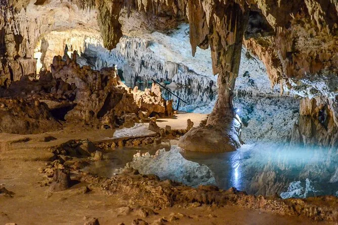 Harás snorkel junto a tortugas marinas en la bahía de Akumal con guía privado, luego te refrescarás nadando en un enorme cenote rodeado de formaciones rocosas milenarias. Incluye transporte desde el hotel, snacks, todo el equipo y tiempo para disfrutar del silencio del mar y la selva. Es una experiencia tranquila, divertida y que nunca olvidarás.