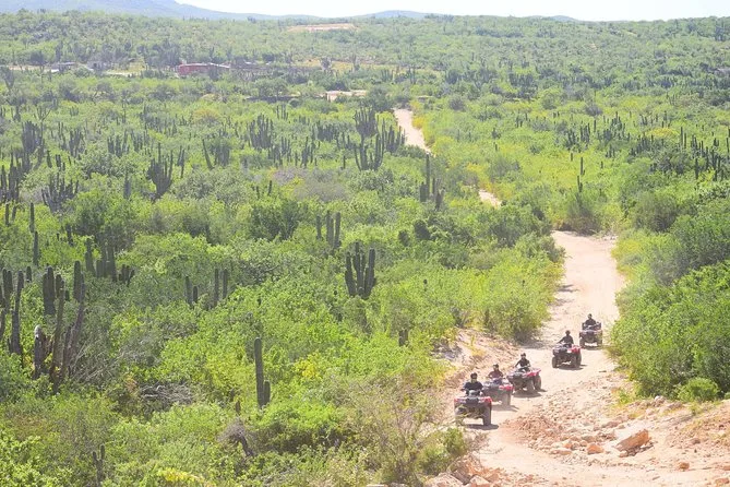 Tu día incluye transporte ida y vuelta desde tu hotel en van de Real Baja Tours, todo el equipo de seguridad para ATV y caballo, agua purificada durante toda la aventura, uso de caballos bien entrenados y ATV adaptados a tu nivel, y termina con una cata de tequila antes de regresar al pueblo.