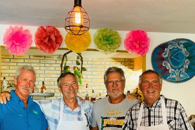 Tu día incluye encontrarte con el chef Issi en el centro de Cabo para explorar juntos los mercados locales y elegir ingredientes. De regreso en su cocina, recibirás delantal y guía práctica para preparar platillos mexicanos clásicos (con opciones vegetarianas si las necesitas), tortillas y salsas caseras, además de comida y bebidas. Todas las recetas te las llevarás para repetir en casa.