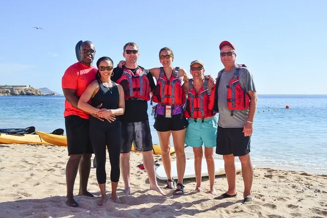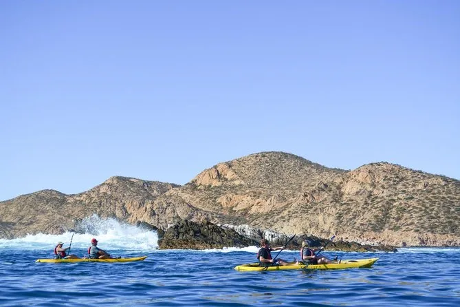 Remarás en kayak con fondo de cristal desde Bahía Santa María con un guía local, viendo peces bajo tus pies antes de hacer snorkel en las aguas tranquilas de Bahía Chileno. Agua clara, risas fáciles, transporte desde el hotel y tiempo para relajarte en la arena tras nadar. Si buscas la vida marina de Cabo San Lucas sin multitudes ni botes, esta es la mejor opción.