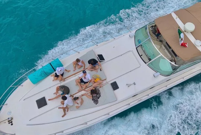 Navega por las aguas azul intenso de Cancún en tu propio yate privado con una tripulación amable que se encarga de todo — música, bebidas e incluso equipo de snorkel. Pasa por Isla Mujeres o relájate en la bahía según el tiempo que reserves. Prepárate para risas, aire salado y mucho espacio para que tu grupo disfrute juntos.