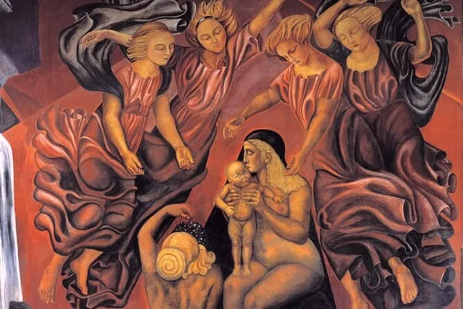 Visitarás “La Creación” de Diego Rivera en San Ildefonso, murales de Rivera y otros en el Ministerio de Educación (o el Museo Mural Diego Rivera si está cerrado), además de obras dentro del Palacio de Bellas Artes.
