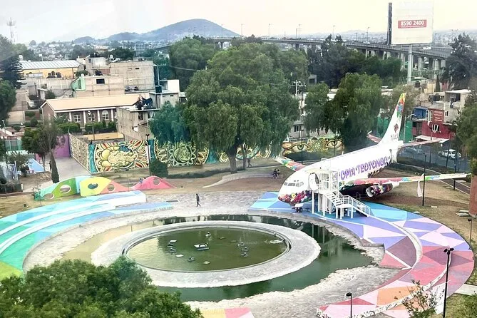Tu día incluye viajes en metro desde el centro de CDMX hasta Iztapalapa con un guía local; entrada a un museo sobre tradiciones aztecas; paradas para probar dulces y tacos en el mercado; un paseo en el teleférico más grande del mundo sobre barrios coloridos; tiempo dentro de un avión convertido en centro cultural; y para terminar, pulque en un bar local antes de regresar en metro.